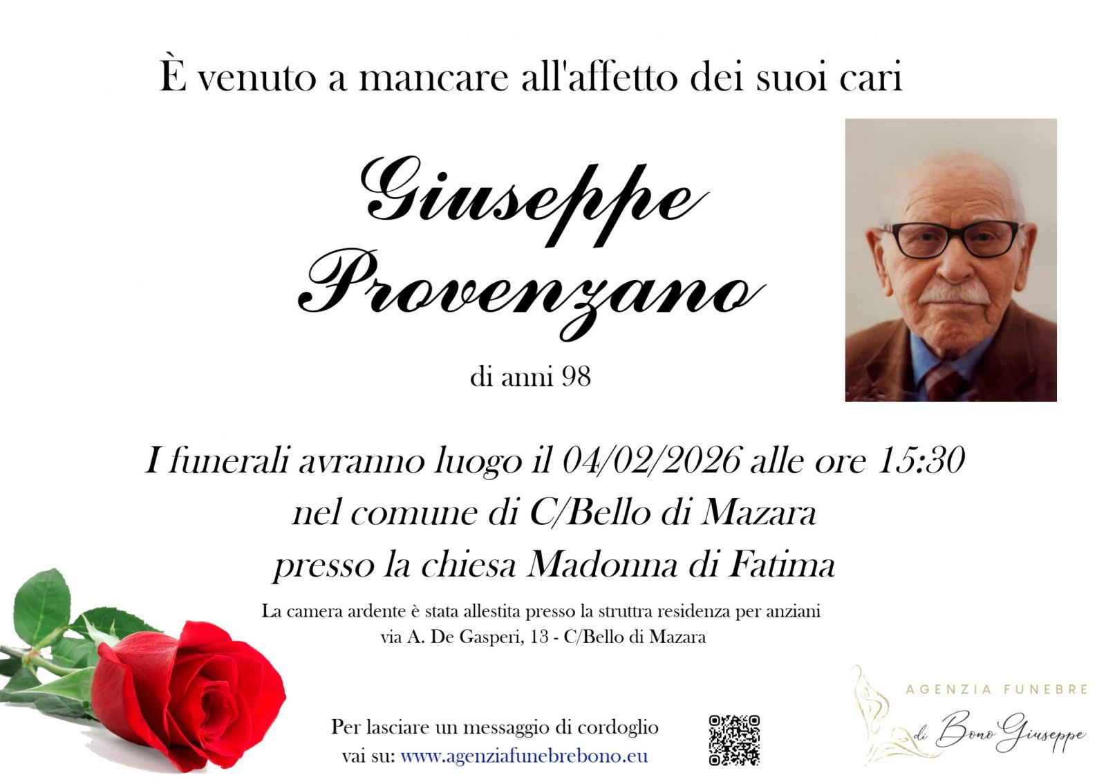 Lascia gratuitamente un messaggio di cordoglio, sarà nostra cura consegnarlo ai congiunti di Giuseppe Provenzano.